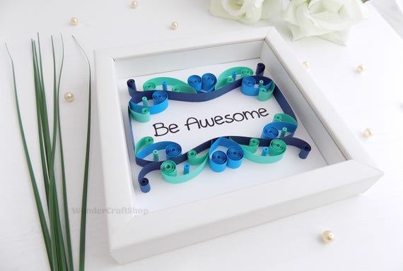 Be Awesome Words For Wall Motivational Decor Life Motto Wisdom Quote She Boss Master Bedroom Decor Framed Wall Art Mint Teal Blue - Download